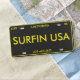 This eye-catching license plate boasts a bold design with the vibrant text "SURFIN USA" set against a sleek black background. It features the name "CALIFORNIA" at the top and "LOS ANGELES" at the bottom, capturing the essence of the Californian surf culture. The plate is marked with "AUG 88," adding a vintage flair to the overall design. Importantly, every element of this license plate is customizable—from the text to the color scheme—allowing you to adapt it to your personal taste or to represent your own locale. This customization makes it a perfect way to express your love for surfing, California, or your own unique identity on your vehicle.
