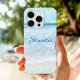 Think of summer each time you use this personalized name cell phone case. Enjoy the solitude of an empty California beach with this stunning, pastel blue and white ocean froth photo, tipped with tiny, sparkly turquoise blue and gold, glam confetti dots. Makes a great gift for someone special!