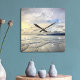 This dramatic coastal Pismo Beach, California, wide, pristine, sandy beach landscape, taken close to sunset exudes peacefulness and solitude. Here you’ll find the surfers waiting for the perfect wave as well as the small birds searching for their evening snack. Recall memories of summer whenever you check the time on this chic, stylish, photography wall clock. Your choice of a round or square clock face. Makes a great housewarming gift!