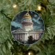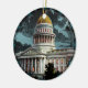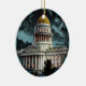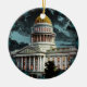 The original vintage postcard, from 1910, shows the California State Capitol in Sacramento, at night lit by moonlight. Reprinted on this beautiful Christmas ornament with Victorian filigree trim.