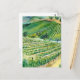 Watercolor painting of the rolling hills full of grapes vines at a California Vineyard. Customize this wine country art postcards with your own text and images to make personalized wine theme gifts!