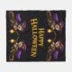 Snuggle up with a touch of enchantment this season under our four magical witch kittens fleece blanket this cozy throw features a perfectly symmetrical design with four adorable tabby kittens and purple witch hats and capes flying inward toward a bold happy Halloween greeting. Each kitten carries a glowing lantern, creating a warm and whimsical atmosphere against the sleek black background soft warm and high detail. This blanket is the ultimate accessory for spooky movie nights nursery decor or as a heartwarming gift for the cat lover in your life, bring home the magic of the moonlight sky and keep the autumn chill at Bay