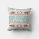 This fun Aztec style pillow is perfect for a college dorm room to remind them to call their Mom! The background is pale blue and there are two wide stripes of an Aztec pattern with "Call Your Mother" in the middle.