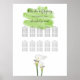 This design features white calla lily flowers and a green watercolor paint stroke in the background. An elegant design representing greenery through the use of watercolor matching the green stems of the calla lilies. This simple yet elegant floral design can be incorporated into any wedding theme. Unique wedding seating chart design with modern elements. Matching wedding invitations and other stationery items are also available.