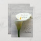 photo of a lovely white calla lily on an old-fashioned script background, part of a wedding suite