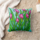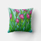 Beautiful, colourful Calla Lily floral painting by popular artist Lisa Lorenz on a throw pillow.