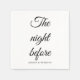 Get Yourself Some elegant and beautiful Decorated napkins for your Rehearsal Dinner. The napkins come in a calligraphy modern style with ~THE NIGHT BEFORE~ font. Also, you can customize the name of the bride and the groom. The napkins feature glitter with Eucalyptus and confetti to make them look so beautiful and elegant.