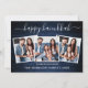 Modern Trendy Calligraphy Script 3 Photo Family Photo Collage Happy Hanukkah Card - Rustic Country Blue Wood