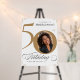 Calligraphy 50th Birthday Gold White Welcome Sign. And elegantly designed special birthday celebration, featuring a custom photo of birthday person and script calligraphy with vintage flourish elements. Simple enough to fit a variety of themes and colors!
