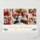 Calligraphy 5 Photo Family Christmas Green Gold Foil Holiday Card