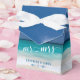 Calligraphy beach wedding favor boxes (tent favor box with white ribbon) with customizable text - you can add bride's and groom's name and wedding date.