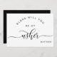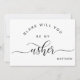Elegant Usher proposal card featuring "Usher" phrase in hand written calligraphy. Card's back in black tone, which can be changed to any other color by selecting customize. Groomsman, best man and ring bearer cards also available.