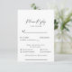 Compliment your rustic wedding event with this calligraphy black white wedding menu choice reply.
