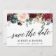 Modern Elegant Calligraphy, Watercolor Burgundy Marsala Blue Floral Wedding Save The Date Card - Blue Back