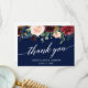 Calligraphy Burgundy Floral Blue Wedding Thank You Card