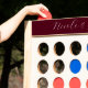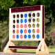 A simple and chic personalized wedding fast four lawn game. This custom outdoor game features a modern calligraphy script font in burgundy and white. Add your names and wedding date for a personalized outdoor reception game for your special day.