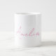 Calligraphy Elegant Pink White Custom Name Giant Coffee Mug