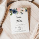 This calligraphy elegant winter floral wedding save the date is perfect for a modern wedding. The design features beautiful hand-painted dark blue, blue, navy, pink , blush, gold flowers and green foliage, bunched into elegant bouquets.