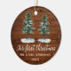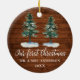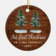 Calligraphy First Christmas Rustic Wood Two Pines Ceramic Ornament