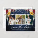 Calligraphy Floral Blue Wood Save The Date Postcard