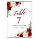 Modern Elegant Calligraphy, Watercolor Burgundy Marsala Floral Wedding Table Card