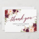 Calligraphy Floral Burgundy Wedding Thank You Card