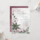 A handwritten, signature font combined with a modern sans serif is used in this floral stationery collection to set a warm and intimate tone for your wedding. The invitation shown here features lush flowers and foliage in shades from soft mauve to sage green against a background of dreamy watercolor paint splashes. Search ID771 to see other pieces and color choices for this set.
