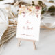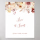 This calligraphy graceful floral love is sweet sign is perfect for a modern wedding or bridal shower. The design features dainty watercolor white, burgundy, pink roses and fall leaves.