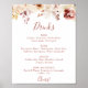 This calligraphy graceful floral wedding drinks menu sign is perfect for a rustic wedding. The design features dainty watercolor white, burgundy, pink roses and fall leaves.