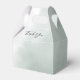 This calligraphy green and white wedding favor box is perfect for a simple wedding. The design features a beautiful calligraphy font in a green and white background to embellish your event.