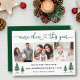 Modern Calligraphy Heart Script 3 Photo Family Photo Collage More Cheer This Year Holiday Card includes Watercolor Pine Trees - Green Script