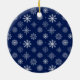Modern Minimalist Simple Calligraphy Script Mr. and Mrs. Heart Bride and Groom Wedding Photo Ornament with Snowflakes back. Navy Blue.