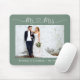 Modern Minimalist Simple Calligraphy Script Mr. and Mrs. Heart Wedding Bride and Groom Photo Mouse Pad - Sage Green