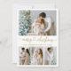 Modern Calligraphy Heart Script Merry Christmas 4 Photo Holiday Card - Gold Text