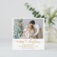 Modern Calligraphy Heart Script Merry Christmas Photo Holiday Card - Gold Text