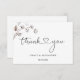 Thank you card adorned with a bunch of cotton flowers and pine cone. The text "thank you" is written in heart connecting font.