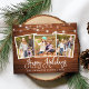 Modern Fun Calligraphy Script Happy Holidays 3 Photo Holiday Postcard - Rustic Country Wood with String Lights