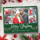 Modern Fun Calligraphy Script 5 Photo Couple Photo Collage Merry Christmas Postcard includes Watercolor Christmas Holly Berries - Forest Green Background