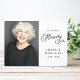 In loving memory funeral memorial photo plaque featuring your photo and the text "in loving memory" with "memory" in an elegant calligraphy script font. Below are the name and dates or other custom text. Custom message on the back.