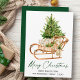 Calligraphy Ink Script Watercolor Pine Tree Sleigh Holiday Card