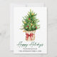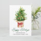 Calligraphy Ink Watercolor Pine Tree Red Bow Holiday Card
