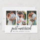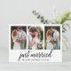 Modern Calligraphy Script Just Married Wedding 3 Photo Wedding Announcement Card