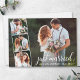 Modern Calligraphy Script Just Married Wedding Announcement 4 Photo Collage Card