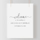 This calligraphy love fancy script wedding welcome sign is perfect for a simple wedding reception. The simple and elegant design features classic and fancy script typography in black and white. Make this poster your own by adding the name of the bride and groom, and the date of the wedding.