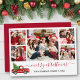 Calligraphy Merry Christmas Red Truck 5 Photo Holiday Card