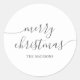 Calligraphy Minimalist Merry Christmas White Classic Round Sticker