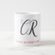 Calligraphy Monogram Name Black Grey Custom Gift Giant Coffee Mug