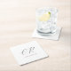 Calligraphy Monogram Name Black White Custom Gift Square Paper Coaster