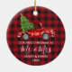 Calligraphy Mr. Mrs. Christmas Truck Red Plaid Ceramic Ornament