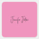 Calligraphy Name Elegant Pink Plain Simple Square Sticker